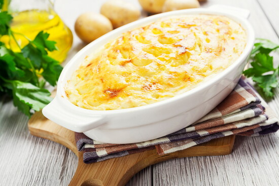 Baked Mashed Potatoes with Parmesan Cheese and Breadcrumbs