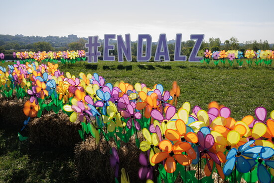 While simple in form, the flowers carry deep meaning. Each color represents a personal connection to Alzheimer’s or dementia, and many participants write the name of a loved one directly onto the petals—transforming the garden into a living tribute of stories, memories, and love.