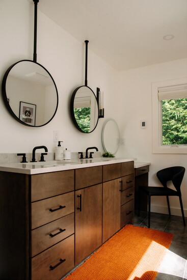 - The Finishing Touches: Mirror shape, window trim width, the texture of the bath mat, and the specific placement of artwork above the toilet.