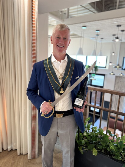 After years of teaching Champagne and sabering classes and hosting events, he saw an opportunity to share that passion more broadly. “By highlighting the history, ceremony, and joy of sabering Champagne, I hoped to inspire more people to learn about Champagne itself and to experience how this tradition can bring a sense of celebration into everyday life,” he says.