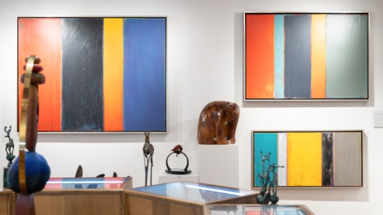 “It's really about using different mediums to enhance one another,” explains owner Ann Klein regarding her husband and co-owner Nathan’s approach to curation. Together, the couple have owned the gallery for the last 10 years. “He's using bronze and glass to paint a picture with the painting. We believe that, on a subconscious level, the intentional curating of this space has a real impact on the viewer.”