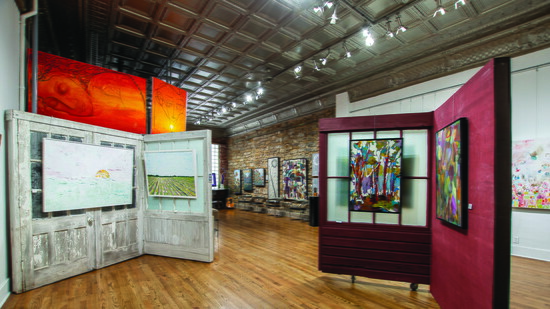 Stephen Smith Gallery is located in the historic building at 931 S. Kansas Avenue and dates back to 1888. Its design features original stone, brick, and concrete walls stretching upward to meet tall, ornate tin ceilings. “Artists and visitors alike love the architecture,” Smith said. “It’s simultaneously surprising and soothing.”