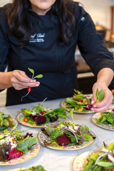 “I love the idea of working and producing meals for people, making people happy and taking it to the next level. That’s the part I really love,” she says. “Making sure my plateware is perfectly matched to the client’s home — presentation and plating is an art of its own. Making a salad is artful to me.”