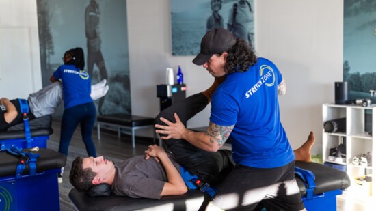 Unlike self-stretching, assisted stretching is a personalized routine performed by Stretch Zone method-certified stretch practitioners. Using a patented strapping system and proprietary tables to position, stabilize, and isolate muscles, clients communicate their comfort level. The result is a comfortable, higher-quality stretch that improves range of motion with less pain.