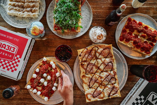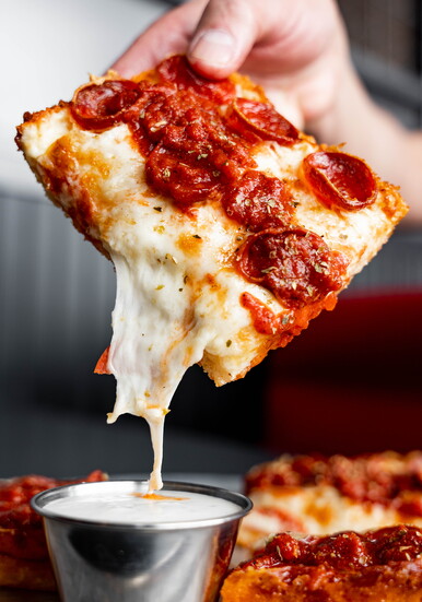 Don’t miss their lunch specials - try the Detroiter or Cheese pizza by the slice or a combo: two slices, small salad, and a drink.