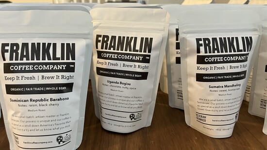 Three years ago, Hadaway officially introduced Franklin Coffee Company, first selling online and later at The Factory’s Wednesday farmers market. Although he no longer sells at the market, he continues offering his coffee online and has shifted his focus toward white-labeling—helping businesses and organizations customize their own branded bags of coffee. “I believe small businesses and organizations can benefit from unique corporate gifts and swag," Hadaway says. "White-labeling coffee is a low-risk, cost-effective way to expand a brand, capitalize on coffee’s popularity, and deliver a quality product while focusing on customer experience." Whether it’s a business, church, or nonprofit, custom-labeled coffee offers a creative way to spread the word, and Franklin Coffee Company is here to make it happen.