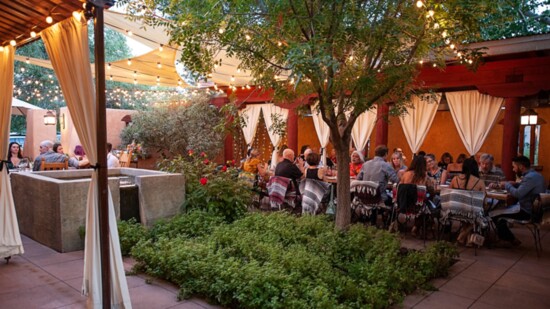Dining outdoors at the picturesque North Valley farm is popular with guests. Montoya says, “We have 12 acres of unobstructed views that are pretty beautiful. It kind of an elevated approach to dining and really honoring what New Mexico has to offer.”