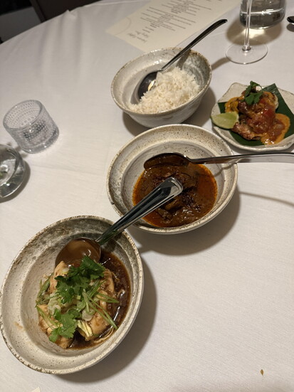 Local, farm-to-table vegetables, free-range eggs, and aromatic spices danced together in each spoonful, setting a restorative, cozy tone for the evening. Next, we were treated to melt-in-your-mouth chicken skewers in a fragrant and rich peanut sauce. Each subsequent course built upon the last, showcasing Chef Dewa’s deft hand with flavor and texture. But the true showstopper—the dish I’ll be dreaming about for the foreseeable future—was the Be Sampi Menuatnyat. This Balinese-style beef was slow-braised for 6 hours until impossibly tender. It was a symphony of spices and technique that showcased the true range of Chef Dewa’s skill.