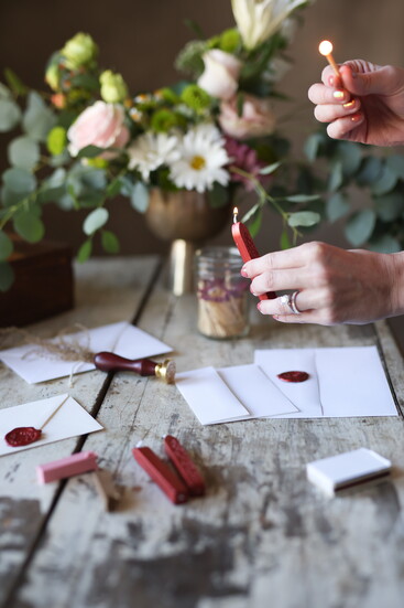Since a handwritten letter is a gift then the envelope should be treated like wrapping one. Sealing a letter with a wax stamp is a beautiful way to turn a standard paper letter into the gift that it is.