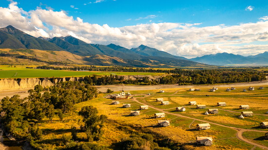 Our first night at Under Canvas North Yellowstone, a gentle rain turned into a ferocious storm, blowing gusts of wind across the Paradise Valley right down the flue of the tiny but mighty wood-burning stove in our tent. We unzipped the heavy duty canvas door and window flaps for a few minutes, stoked the fire and crawled back under the down duvet of the king bed to listen to the drama outside. We felt completely safe and cozy in the sturdy safari-inspired tent, designed by the founders of Under Canvas, now with 13 locations, all near national parks.