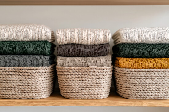 Fold knits, sweats, tees and activewear to preserve their shape. Store cashmere in cedar to protect against moths. Keep your closet visually clear and easy to navigate.