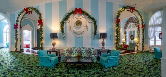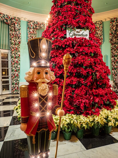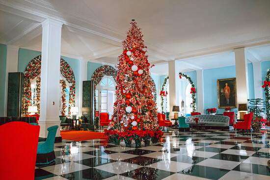 From the moment you step through the grand front entrance, festooned in garland and ribbons, the scent of pine and gingerbread fills the air. Every hallway glows with the warm light of chandeliers reflecting off crimson and emerald décor, and the energy of the season is unmistakable, joyous, elegant, and undeniably Greenbrier.