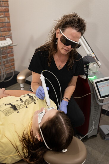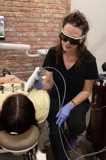 As dentistry evolved, her philosophy evolved. Messy impressions gave way to digital scanners and advanced imaging, but the biggest shift came from her own curiosity and commitment to continuing education. Recently, she earned the prestigious Fellowship award from the Academy of General Dentistry, which required 500 extra hours of coursework and a rigorous exam. Along the way, she discovered Platelet Rich Fibrin (PRF), a regenerative technique used in dental surgery that also proved transformative for facial aesthetics. “The more I practiced, the more I realized dentistry is more than filling a cavity,” she says. “Oral health and overall health are deeply connected.”
