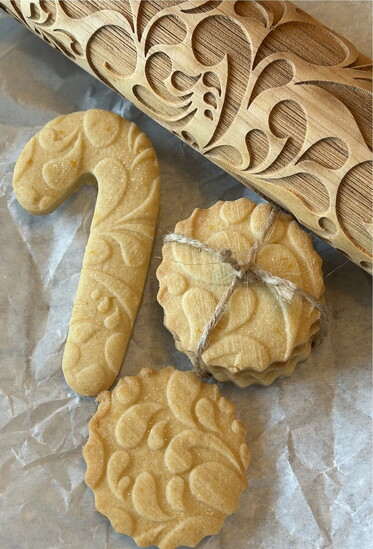 Together, their success is evident. With over 200 designs, Sweet Rolling Pins, available locally at Aspen Kitchens and Sparrow Hawk Gourmet Cookware, as well as across Colorado, caters to the heart hugs and smiles of every novice or expert baker, crafter or potter. Stacy’s favorite design: the Floral Swirl, which she attributes to being universal and something that can be used year-round. The other, Goofy Reindeer, “is perfect for little ones to help you,” and comes as both a rolling pin or a cookie cutter and stamp. Each rolling pin comes with its own recipe for Springerle Shortbread cookies, which can easily be modified as the seasons change, with dashes of pumpkin spice or cinnamon, and whose texture easily complements the rolling pins.