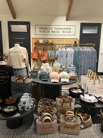 And shop we did. After breakfast, we entered Magnolia Market, weaving through displays of home goods, gifts, and that perfectly curated Magnolia aesthetic. I found myself reaching for a copper and brass colander I definitely didn't need but was too pretty to pass up, and kitchen towels that were a perfect addition to my mother’s kitchen. My friend discovered a gorgeous olive oil dispenser that she declared would be best suited for her kitchen counter, and delicate floral bookmarks that would be an ideal gift for her book club friends.