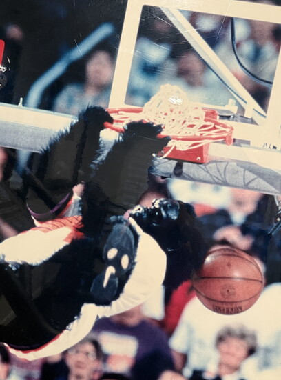 He was the first to bungee jump, ascend or rappel in an arena, or pull a “Tarzan” and swing across the length of Chase Field… more than 240 feet up. He was also notably the first in the NBA to be inducted into the Mascot Hall of Fame. And when his age and injuries started to catch up with him, he created the first NBA Dunk Team to take some pressure off his own body.