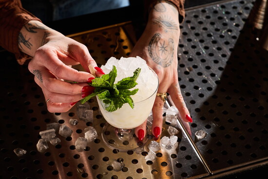 The Peach Crease Club is the latest passion project from husband-and-wife team Stuart Jensen and Alex Jump, longtime bartenders and hosts. While the bar opened its doors in Denver’s rapidly evolving RiNo neighborhood on November 28, its story began years earlier, in a far more intimate setting, a small shed in their backyard turned into a tiny cocktail bar for friends and family.