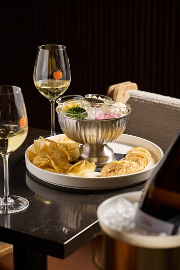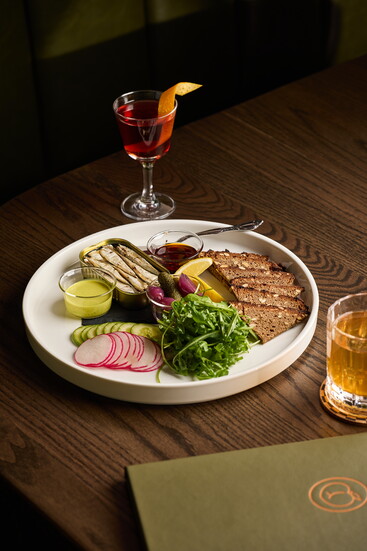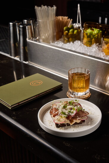 The cocktail menu reflects Jump and Jensen’s deep love of food as much as cocktail crafting. Flavors are layered and intentional, designed to complement one another rather than compete. This philosophy extends to their food program, which is crafted to enhance the boozy offerings with expertly plated and delicious bites. The Peach Crease Club offers a selection of highly curated small plates and snacks. Caviar service sits comfortably alongside thoughtfully assembled meat and cheese boards, as well as other refined finger foods. Everything on the food menu, much like the cocktail menu, feels purposeful and thoughtful.
