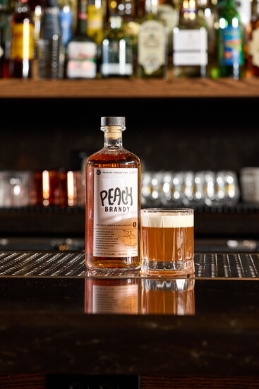 Inside The Peach Crease Club, the atmosphere strikes a careful balance between vintage charm and modern vibes. The space is cozy while maintaining class, and stylish without needing to be complemented. There’s an intentionality to every detail, from the warm textures and subtle lighting to the glass backbar and dark wood paneling. The space makes you want to settle in and forget how long you’ve stayed. A towering wall of bottles elegantly invites you to sit at the classic bar or tuck away at one of the comfortable booths to enjoy the tunes.