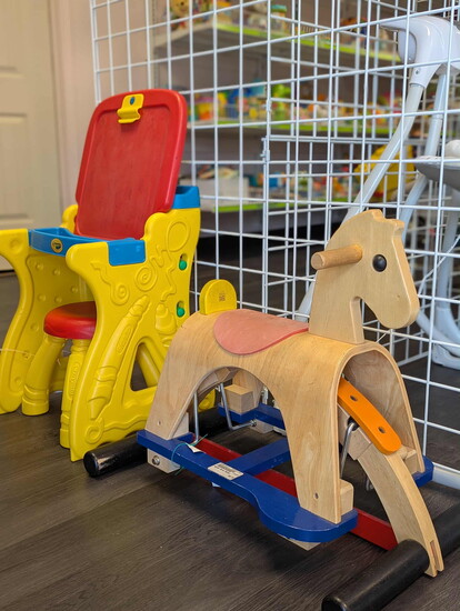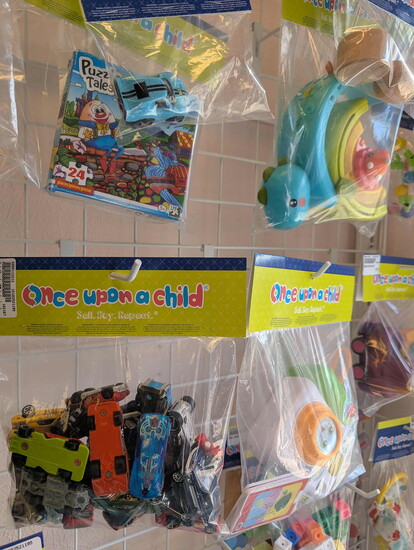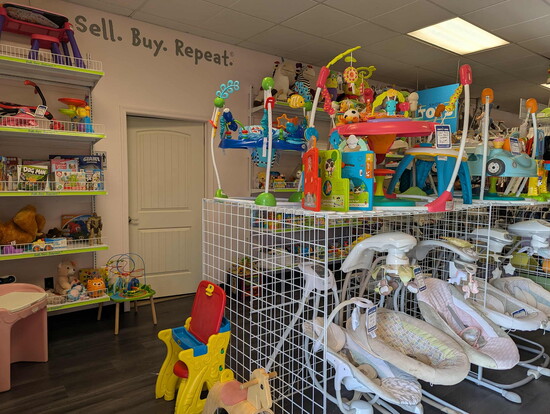 We pay cash on the spot for all items that we buy. You can choose cash or in-store credit. There’s no payment necessary, you just bring in the items that you want to sell and my staff and I go through each item trying to find the ones that are in the best shape, the ones that are like-new condition, and then once we’ve gone through it all, we just call the customer back and let them know that their payout in ready. They come and we make them an offer. We are always buying. We buy all hours of the day, no appointment necessary. We buy all seasons, all year long. We’re looking for clothes, size preemie to youth 20. We buy children’s shoes, boots, sandals, all that good stuff. We take toys, books, equipment—from bassinets to high chairs, swings, bouncers—all of the baby things that you need. We can’t take carseats for safety reasons but pretty much everything else—strollers, diaper changing tables, cribs. They have to be in really great condition. They can’t have any paint chipping or anything like that. Also, with our baby equipment, safety standards are really important to us—we always check for recalls.