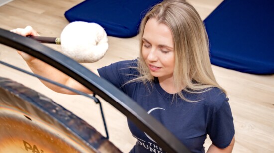 "A sound immersion, also known as a sound bath, is a deeply restorative and meditative experience that uses the vibrations of sound to guide your body and mind into a meditative state of relaxation. We use instruments like crystal singing bowls, gongs and chimes to create a soundscape that mimics the frequencies of nature. The vibrations of these instruments entrain the brain and heart rhythms to a more natural state, releasing stress and tension from the body with ease. During a sound immersion, many feel that they're cocooned in their own space, enveloped by the soothing sounds that allow clients to connect with a deep sense of inner peace."