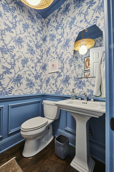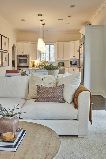Color plays a key role in her work—not as a trend, but as a feeling. "I always try to walk people into color," she says. "Some want to jump into the deep end, and some want to dip in a toe. But nobody lives in a house that's all white. It's not real life—kids, dogs, coffee, crumbs.. You need warmth and personality."