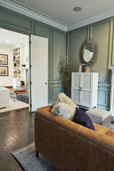 She transformed the space using a long dining table—one spouse at each end—and a seating arrangement near the fireplace. The room became both a shared office and a secondary living area. After the workday ended, it shifted into a calm retreat, somewhere to read, unwind, or enjoy a quiet moment out of the fray. "Once that room came together, it sparked everything else," she says. "They suddenly saw possibility in the whole house."