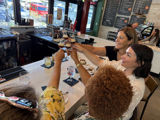 I first met Emily, a dry pour mobile bartender, at The Hummingbird Lounge. She became inspired at a 2018 wedding in Colorado and has been working to find the perfect horse trailer to convert into her “mobile bar cart.” Emily started our day out strong with some of the best cocktails: Scarlet Sprig – a crisp vodka martini with orange liqueur, lime and pomegranate juices, Sweet GA Brown – bourbon with pecan liqueur, walnut bitters and her homemade pecan simple syrup, and her signature cocktail Golden Orchard – a vanilla vodka with apple cider, lemon juice, pure maple syrup and a cinnamon/sugar rim, one of my personal favorites. The ingredients are the most important part for Emily, and she grows her own herbs and makes all of her own mixers. She created the Hummingbird menu and loves to fashion customized menus for all of her guests.