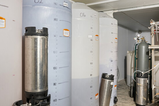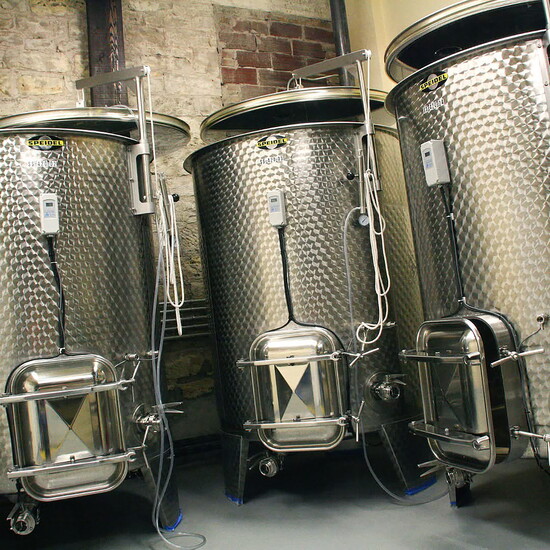 - Fermentation: Yeast is added to the juice in four 500-gallon tanks.