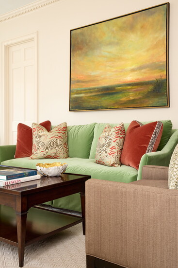 That attention to feeling carries through to the final layers of a design. “Lamps and pillows instantly elevate a room,” she notes. Simple as they may seem, these elements bring warmth, texture, personality and dimension, turning a space into something that feels complete and lived in.