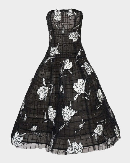 Carolina Herrera Floral Embroidered Strapless Drop-Waist Dress- $12,995