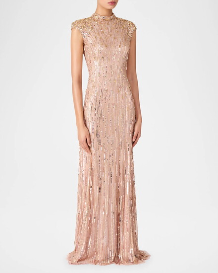 Jenny Packham “Ernest” Crystal Sequin Cap Sleeve Gown- $4,720