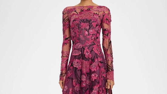 Naeem Khan Floral Embroidered Long Sleeve Illusion Gown- $5,995