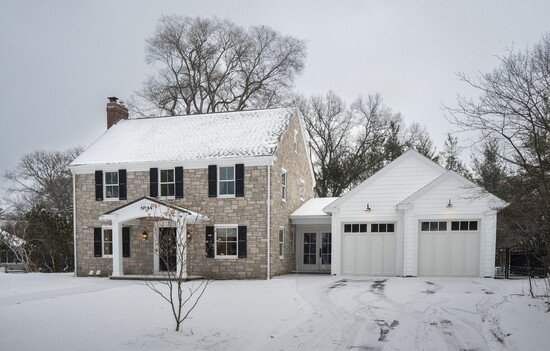 The house, originally built with cedar shake, had woodpecker holes in the siding, a one-car garage, and an unheated breezeway. Glenz embraced the full project: The exterior was redone with all-stone facades, a new roof, and windows.