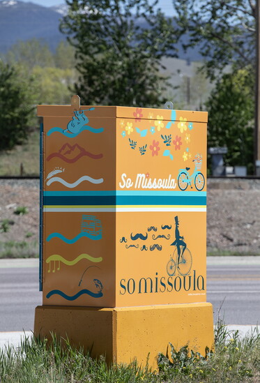 To transform a drab public utility box into a work of art seems apropos for Missoula, where we imbue our public spaces with creativity. “Artists have been out there, under tents, creating their artwork in rain, sleet, and snow. People will drive by and honk their horns in encouragement. I’ve seen many a dad bring their child soup,” said Kathi. With dedicated volunteers behind the scenes and resilient artists on the corners making their visions into reality, Missoula drivers have a pleasant surprise to enjoy while waiting at an otherwise boring red light. You can see pictures of all the boxes at PublicArtMissoula.org/traffic-signal-boxes.