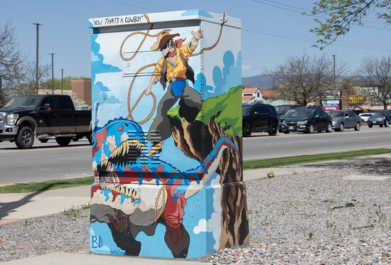 “We started out with 72 boxes,” said Kathi Olson, head of Missoula’s Public Art Committee. Kathi credits Paula Goldberg, the artist behind the popcorn machine, for the inspiration to start the project. “She came to me and said, ‘We do these in my hometown in Missouri, and we should do it in Missoula.’ So, we brought the idea before the city’s Public Art Committee, and they voted it in. Then, we had to take it to the highway department and any public entities involved with the boxes. They saw the benefits and gave approval shortly after,” Kathi said. Since then, all of the entities involved have been quick to approve new artwork for more boxes each year. The decision is easy, given that decorating the boxes has shown to decrease graffiti by 90%. “I think people respect the artists’ work,” said Kathi.