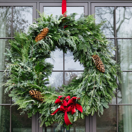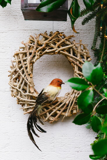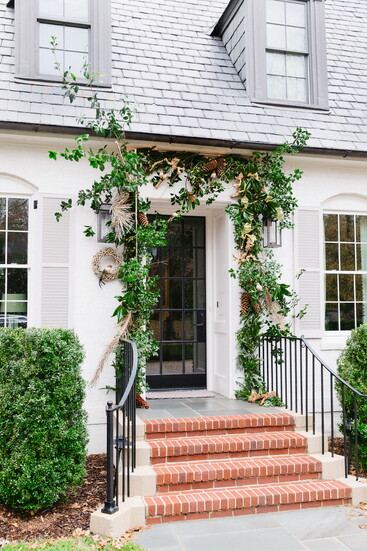 “I’ll peruse their yard and start snipping some branches, and next thing you know, I'm attaching big branches around the door,” Lugibihl says. “It takes on a life of its own. A lot of times, people will come out and look at their door and ask where I got some of the material.”