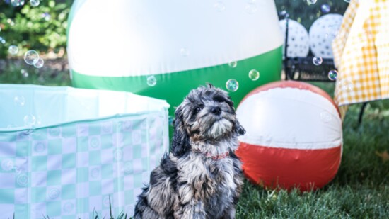 Set up play areas for your furry guests to enjoy. This can include a doggy pool or splash pad, chew toys, frisbees, and don’t forget the pet-friendly bubbles.
