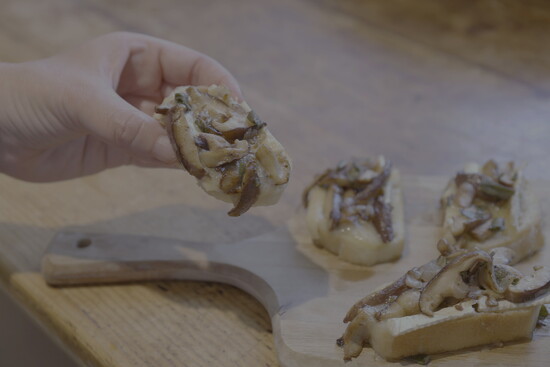 Place a piece of brie on each toasted baguette slice. Spoon warm mushroom-shallot mixture over the brie. Optional: return to the oven for 2–3 minutes to melt the brie for extra gooeyness.