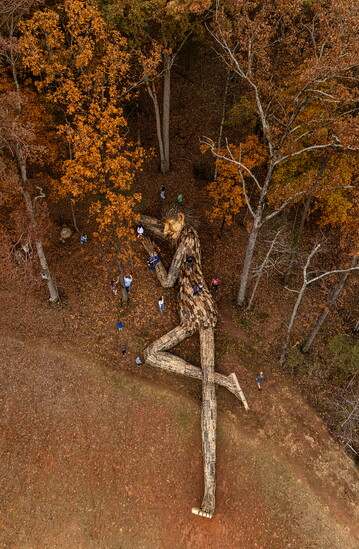 Big Pete is a 90-foot-long troll nestled in the new River District development by Crescent Communities. He's the latest art installation from Thomas Dambo, a renowned Danish artist known for creating giant trolls from recycled wood and other materials.