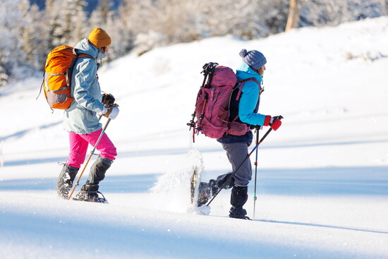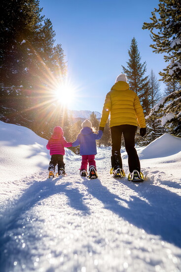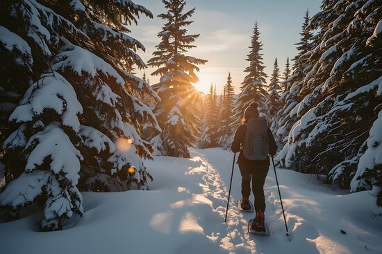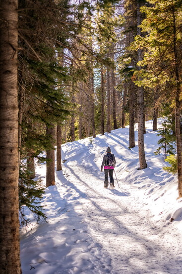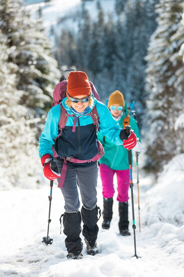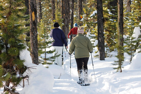 - Know your gear: Make sure your snowshoes are the right size for you and that you have trekking poles for balance. Local stores will be happy to measure you, so you are safe on the trails!