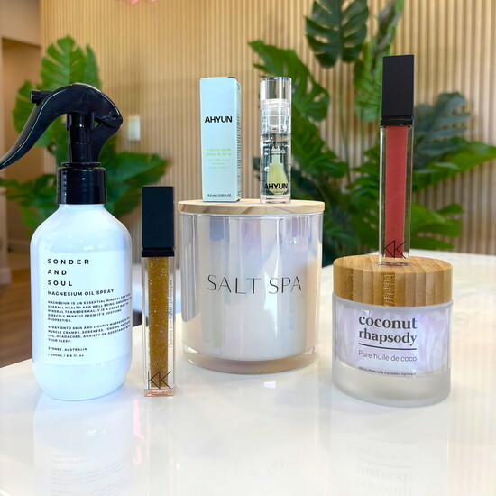 A luxurious collection of self-care essentials — magnesium spray, lip gloss and oils, coconut oil, and a signature Salt Spa candle — beautifully curated to restore balance and glow. The perfect pampering pick-me-up for anyone who deserves relaxation. Available at Salt Spa, 45923 Hayes Rd, Shelby Twp.