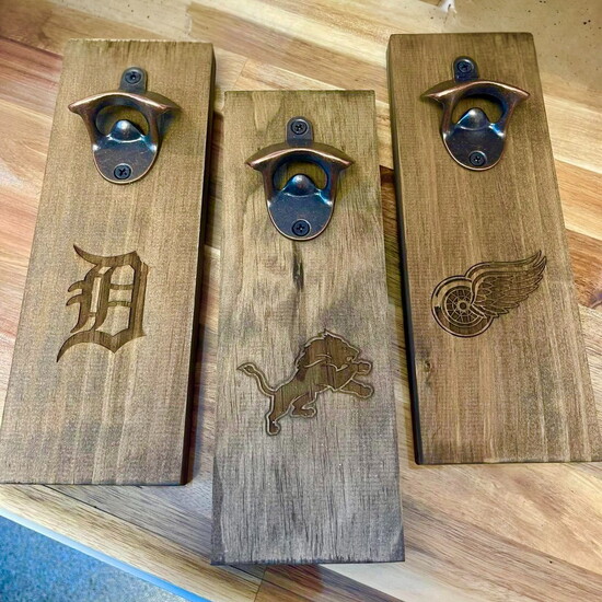 Hand-crafted in Michigan, these wooden openers feature sports logos, zip codes, or custom designs — a fun, personalized gift for game-day fans and home entertainers alike. Available at The Nest Collaborative, 66 Macomb Pl, Mount Clemens.