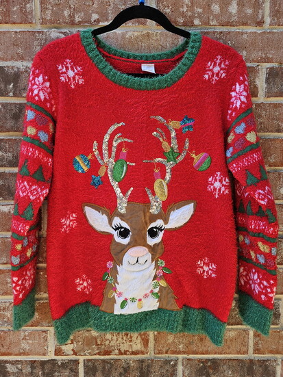 Melissa believes the “ugly” Christmas sweater gives people permission to relax and embrace the joy of the season. “It gets you in the holiday spirit. You can say, ‘I’m here for Christmas, but I’m also ready to have fun,’” she adds. “Even a stranger in the grocery store might smile and tell you they love your sweater. It creates community.”
