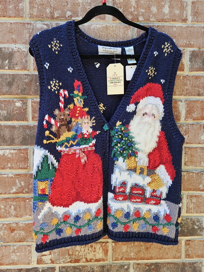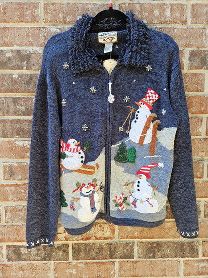 “I realized no one was really doing ugly sweaters,” Melissa says. “Vendors had a few options, but they were mostly new and not funny, rather just pretty. I saw it as a missed opportunity.”