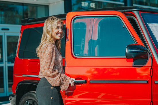 The camera’s ready, the bow’s on top, and Caroline Fields, Mercedes’ marketing and events director, is beaming behind the lens. “This is your moment!” she always says before snapping the first photo. Whether it’s someone’s very first car, their dream car, or a long-awaited gift, she knows how much this day matters. She’ll take as many pictures as they want because people remember these moments — the feeling of standing next to the car they’ve worked for, hoped for, or surprised someone with.