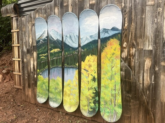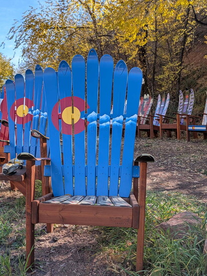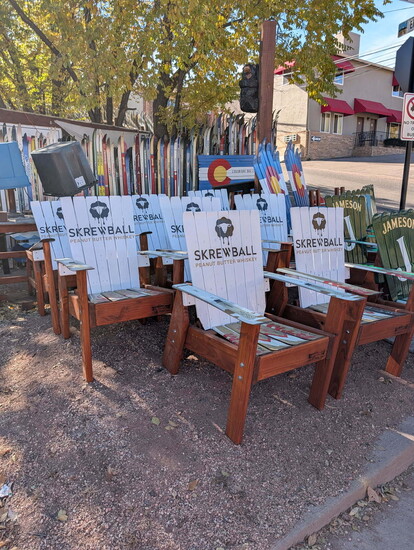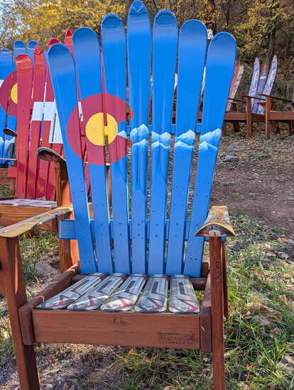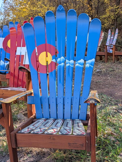 “I ended up getting a ski donation from Ft. Carson and they were all white,” Vernon says. “My daughter thought they were a little boring and she asked if she could paint them. She painted Colorado flags and various mountain scenes that were very popular with my customers. Before long, my son and his friends joined in building and painting chairs. It was great having my family get involved.”