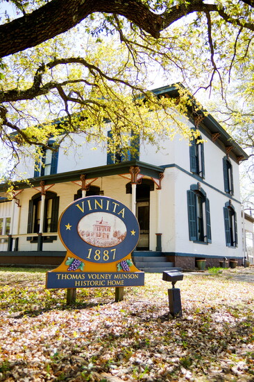 Designated a Texas Historic Landmark in 1967, Vinita , built in 1887, was once the center of a sprawling 350-acre working vineyard and farm. Munson and his family lived in the home until his death in January 1913.
