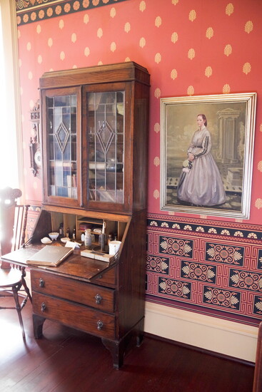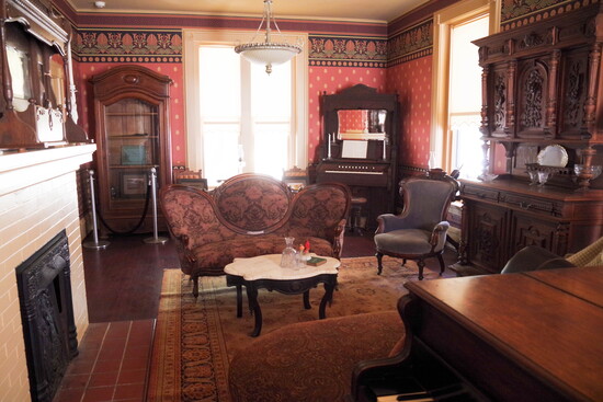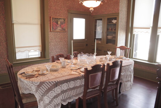Paula Jonse, Director of Development for the Grayson College Foundation, which was given the responsibility of caring for and offering tours of the T. V. Munson Vinita house, enjoys spending time at the home and sharing Munson’s legacy with visitors. Inside the house, guests can see original and period-correct furnishings and artifacts. Beautiful hardwood floors, vintage wallpaper, original glasswork, and historic photos can all be seen throughout the charming two-story home. The house even includes a cellar that was once used to store wine barrels.