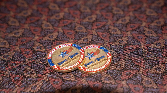 Approximately eight weeks earlier, this same group started on a journey together. They signed up to participate in Voices of Valor, one of the many programs offered by Music for All Seasons, located in Scotch Plains. The Voices of Valor program brings small groups of veterans together with two professional musicians and a psychology mentor for ninety minutes weekly over a period of eight weeks. The musicians do not perform for the veterans, rather they serve as facilitators guiding the group to use their shared experiences to write the lyrics to a group song. The lyrics are then set to music, performed, and recorded in a professional studio (in this case they recorded at Sound on Sound Studios located in Montclair, NJ). The final session for the group is a CD release party during which the finished product is presented for the participants, along with their friends and family. Tonight, they will hear their song, “How do We Heal?” for the first time. They will also be awarded Commemorative Coins and CDs, presented to them by Music for All Seasons Executive Director, Rena Fruchter.